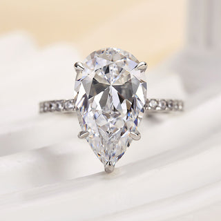 Add a touch of timeless glamour with this 4.5CT Pear Cut Hidden Halo Pave Moissanite engagement ring, crafted in radiant 925 sterling silver. The hidden halo and pave accents bring out the full brilliance of the pear cut, making this an unforgettable engagement ring. With the elegance of a classic diamond ring, it offers the beauty of a high-end diamond engagement ring at an incredible value. Its unique design and sparkle make it a truly unique engagement ring for modern romantics. Whether you're proposing or celebrating forever, it's a stunning choice for a wedding ring.