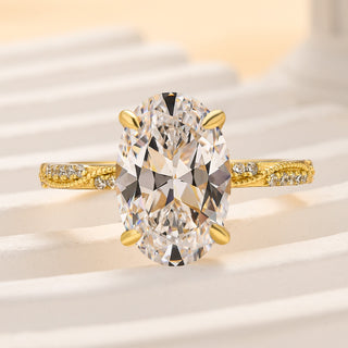 3.5CT Oval Cut Hidden Halo Vintage Style Diamond Moissanite Engagement Ring in 925 Sterling Silver