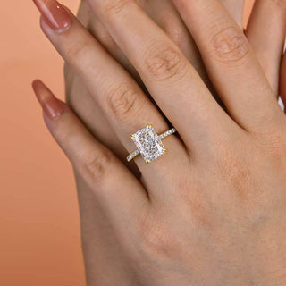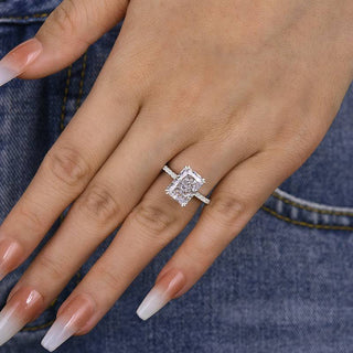 4.5CT Radiant Cut Hidden Halo Pave Diamond Moissanite Engagement Ring in 925 Sterling Silver