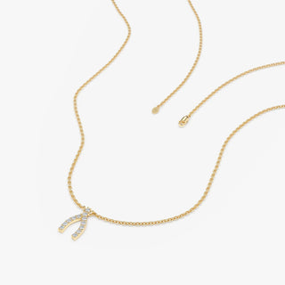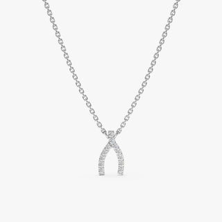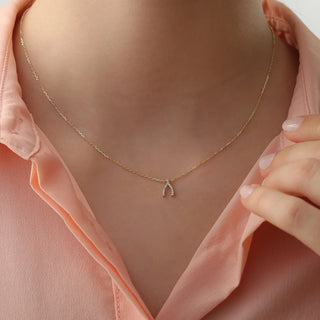 The 0.06 TCW Round Cut Small Wishbone Moissanite Diamond Necklace in 925 Sterling Silver features a dainty wishbone design embellished with sparkling round-cut moissanite stones. Crafted from high-quality 925 sterling silver, this necklace symbolizes luck and elegance, making it a perfect accessory for everyday wear or special occasions. Its understated charm makes it an ideal gift for loved ones or a lovely addition to your own jewelry collection.
