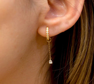 Enhance your style with our 0.08 CT Round & Pear Chain Hoop Moissanite Diamond Earrings, crafted in 925 sterling silver. These eye-catching hoops feature a unique combination of round and pear-shaped moissanite stones, adding a touch of elegance and flair to any outfit.