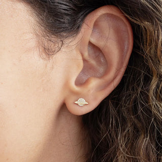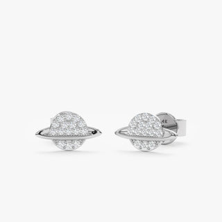 Embrace celestial charm with our 0.09 CT Round Cut Saturn Planet Stud Moissanite Diamond Earrings, set in 925 sterling silver. These whimsical earrings beautifully capture the essence of the cosmos, adding a playful touch to any outfit.