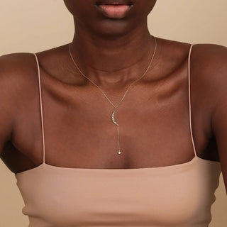 The 0.11 TCW Round Cut Half Moon Lariat Moissanite Diamond Necklace in 925 Sterling Silver features a stylish half-moon design that elegantly drapes with sparkling round-cut moissanite stones. Crafted from high-quality 925 sterling silver, this necklace offers a modern twist on classic jewelry, making it a versatile accessory for any occasion. The lariat style allows for adjustable length, adding a touch of sophistication to your outfit. Ideal for layering or wearing alone, it makes a lovely gift or a beautiful addition to your collection.