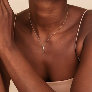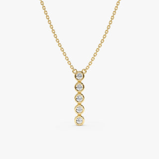 Enhance your style with our 0.15 TCW Round Bezel Vertical Bar Moissanite Diamond Necklace in 925 sterling silver. This modern piece features a vertical bar design with round moissanite stones elegantly set in bezels, offering a chic and contemporary look. Perfect for layering or wearing alone, it adds a touch of sophistication to any outfit.