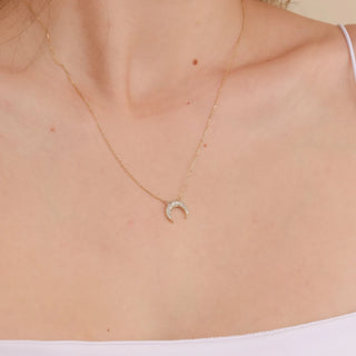 The 0.17 TCW Unique Round Cut Moon Moissanite Diamond Necklace in 925 Sterling Silver features a beautifully designed crescent moon, adorned with sparkling round-cut moissanite stones. Crafted from high-quality 925 sterling silver, this necklace captures the enchanting beauty of the night sky. Its elegant design makes it a perfect accessory for any occasion, adding a touch of celestial charm to your outfit. Ideal for gifting or as a lovely addition to your own collection, this necklace symbolizes dreams and aspirations.