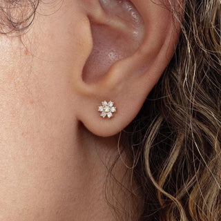 These 0.23 CT Round Cut Flower Moissanite Diamond Earrings in 925 sterling silver feature a charming floral design, with sparkling moissanite diamonds beautifully arranged to resemble delicate blooms. Perfect for adding a touch of elegance and femininity to any outfit, these earrings are ideal for both everyday wear and special occasions.