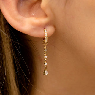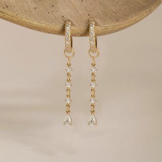 These 0.32 CT Round & Pear Drop Hoop Moissanite Diamond Earrings in 925 sterling silver feature a stunning design with a combination of round and pear-shaped moissanite diamonds delicately hanging from sleek hoops. Perfect for adding a touch of elegance and sophistication to any outfit, these earrings are ideal for both everyday wear and special occasions.