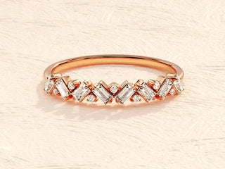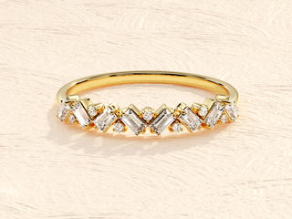 ✧ Colorless Moissanite Accents Shapes: Round & Baguette