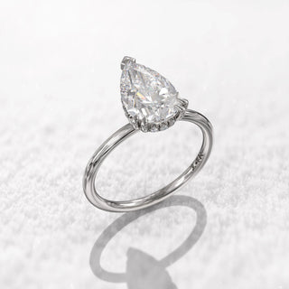 2.0TCW Pear Cut Hidden Halo Moissanite Diamond Engagement Ring in 925 Sterling Silver