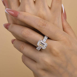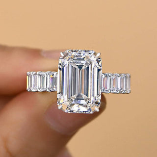 Make a bold statement with this stunning 7.0CT Emerald Cut engagement ring, designed to turn heads with its timeless elegance. Featuring a striking emerald cut moissanite surrounded by brilliant pave diamonds, this piece is the epitome of sophistication. This moissanite engagement ring offers the brilliance of a diamond ring with unmatched value. A dazzling choice for anyone seeking a unique engagement ring with classic appeal. Perfect as a showstopping diamond engagement ring and a lifelong wedding ring symbol.