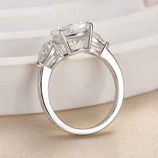 Dramatic and dazzling, this 3.5CT Moissanite engagement ring features a stunning pear cut center stone accented by two side stones for a bold, elegant silhouette. A striking unique engagement ring, it merges the brilliance of moissanite with the timeless appeal of a classic diamond ring. Whether worn as an engagement ring, diamond engagement ring, or cherished as a wedding ring, it's a radiant celebration of your love story.