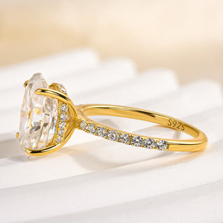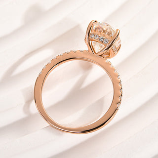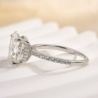 Make a bold statement with this 4.0CT Oval Cut Hidden Halo Pave engagement ring. The radiant cut center stone sparkles with unmatched brilliance, surrounded by a hidden halo for a modern twist. This moissanite engagement ring offers the luxury of a diamond ring with ethical elegance. A stunning and unique engagement ring that blends timeless design with contemporary style. Perfect as a diamond engagement ring or cherished wedding ring for your forever moment.