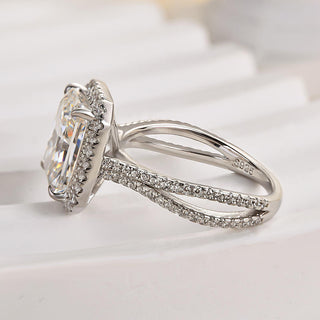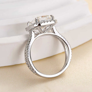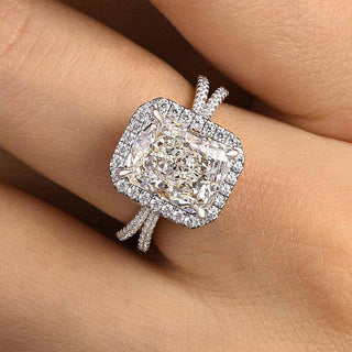 Exude elegance with this striking Unique engagement ring, featuring a 4.0CT radiant-cut moissanite framed by a sparkling halo and a split shank pavé diamond band. This exquisite Moissanite engagement ring offers the brilliance and fire of a high-carat Diamond ring with a bold, contemporary design. The split shank adds dimension and extra sparkle for a luxurious touch. A captivating Diamond engagement ring symbolizing everlasting love and sophistication. Perfect as a show-stopping Wedding ring to mark your forever moment.
