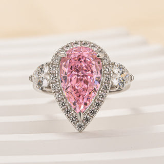 Celebrate your love with this stunning 3.0CT Pear Cut Halo Three Stone engagement ring. Featuring a radiant pear-cut moissanite center framed by a shimmering halo and side stones, this moissanite engagement ring exudes elegance and brilliance. The dazzling design blends the charm of a diamond ring with the brilliance of moissanite. A perfect choice for those seeking a unique engagement ring with timeless appeal. Ideal as a diamond engagement ring or symbolic wedding ring.