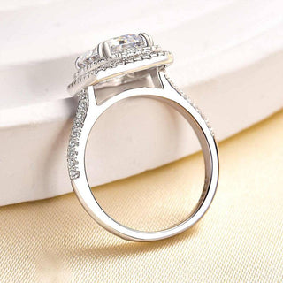 Make your love unforgettable with this exquisite 2.5CT Emerald Cut Moissanite engagement ring in 925 sterling silver. Featuring a dazzling double halo and pavé band, it's a true showpiece diamond ring. The elegant emerald cut and layered sparkle make it a stunning unique engagement ring. Designed to shine like a true gem, this moissanite engagement ring delivers the brilliance of a high-end diamond engagement ring. Perfect as an engagement ring or wedding ring, it’s a timeless symbol of your commitment.