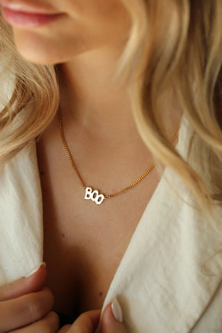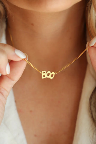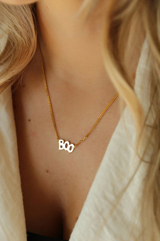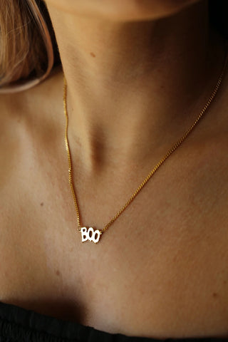 The Creepy Spooky Boo Halloween Necklace in 925 sterling silver is a playful and spooky statement piece, featuring a fun "Boo" pendant that adds a touch of Halloween spirit to your look. Perfect for the season, its unique design combines festive charm with minimalist elegance, making it a fun and stylish accessory for any Halloween lover.
