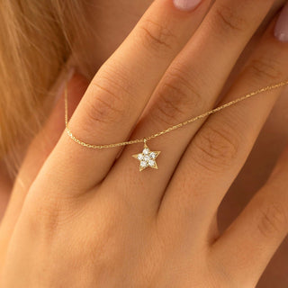 0.13 TCW Round Moissanite Two-sided Star Diamond Necklace in 925 Sterling Silver- The ‘Sawyer’ Necklace