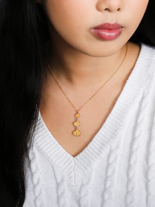 The Minimalist Engraved 3 Pumpkin Pendant Necklace in 925 Sterling Silver features three intricately engraved pumpkins, adding a touch of fall charm to your look. Perfect for celebrating the season with a subtle, stylish design.