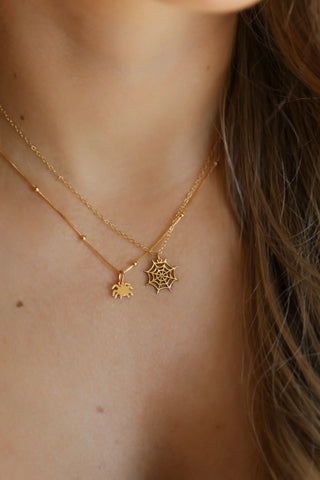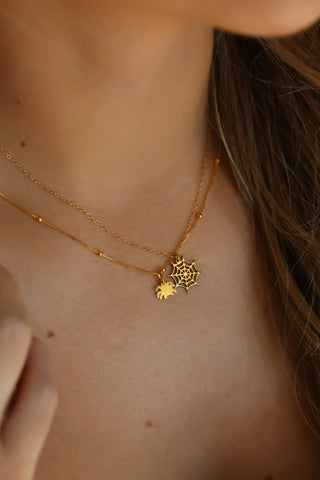 The Minimalist Spider Pendant Beaded Necklace in 925 Sterling Silver features a sleek, subtle spider design on a delicate beaded chain. Perfect for adding a touch of spooky elegance to your Halloween-inspired style.