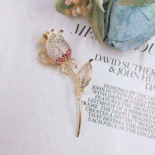 Radiate elegance with this exquisite Brooch Pin, featuring a delicate pink rose flower crafted for a luxurious and timeless look. Perfect for enhancing formal or everyday outfits, this Brooch Pin for women adds a romantic and refined touch. Celebrate classic beauty with this graceful floral Brooch Pin design.