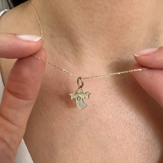 The Spooky Ghost Halloween Necklace in 925 sterling silver features an adorable, whimsical ghost pendant, capturing the fun and eerie spirit of Halloween. Its playful design adds a subtle touch of festive charm, making it a perfect accessory for those who want to celebrate the season in a chic and stylish way. A fun and spooky piece to add to your Halloween collection or gift to someone who loves the season!